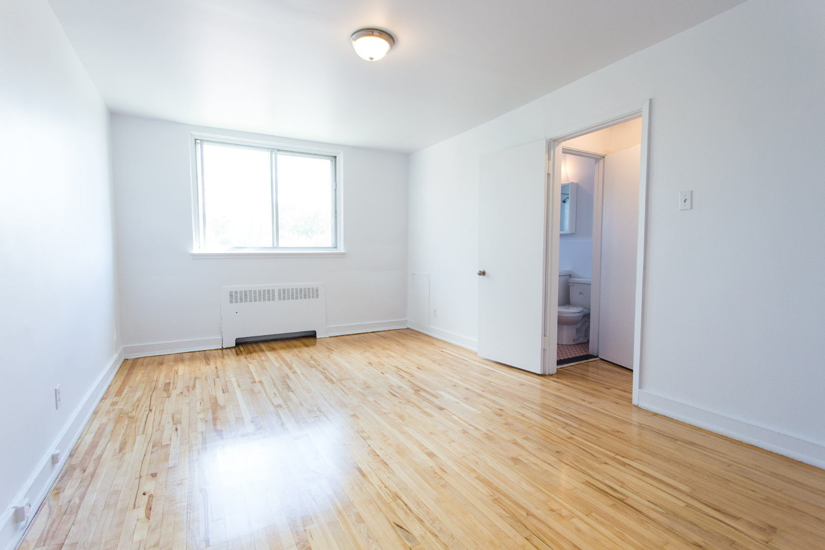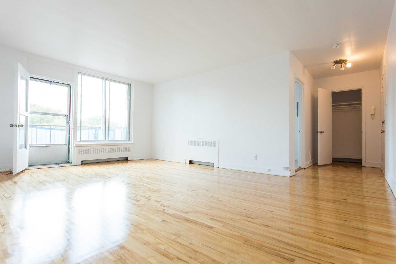Un apartament cu un dormitor, living mare, balcon și mai multe dulapuri